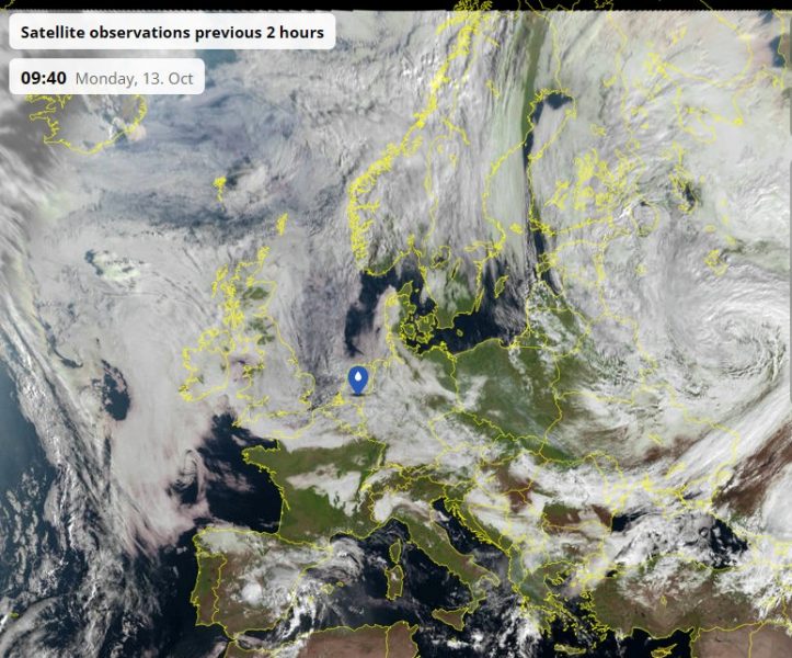 Fig.5 Satellietbeeld (zichtbaar licht), bron Sat24, van maandagochtend 13 oktober 2025.