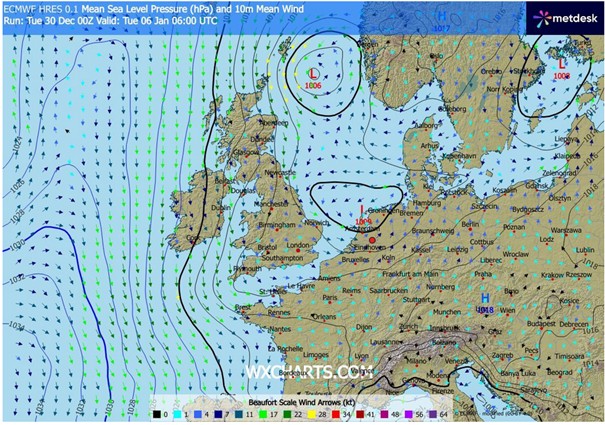 ECMWF berekening voor 6 jan 06z (bron: WXcharts).